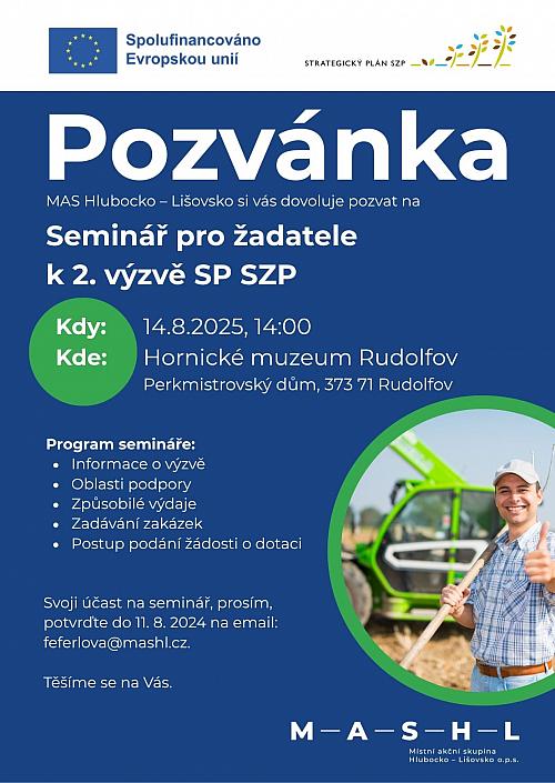MAS Hlubocko – Lišovsko vás srdečně zve na seminář pro žadatele k 2. výzvě Strategického plánu Společné zemědělské politiky (SP SZP).